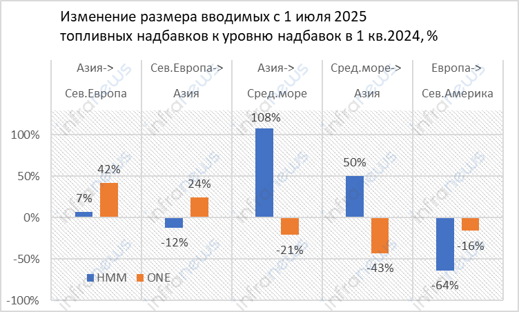 Известный аналитик контейнерного рынка Ларс Йенсен сравнил анонсированные на второе полугодие надбавки ONE и HMM. Операторы являются членами одного альянса — ранее THE, теперь Premier — и, следовательно, имеют сопоставимые структуры сервиса и себестоимости. Однако мы видим, что их подходы к расчету надбавок сильно различаются, и в динамике не прослеживается связь с изменением себестоимости.